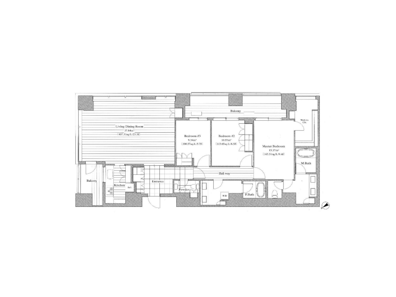 約15.3帖の主寝室にはウォークインクローゼットに加え、専用のパウダールーム・トイレ・バスルームを完備。まるで上質なホテルスイートのようなプライベート空間が広がります。ほか2つの洋室も10帖超・9帖超と十分な広さを確保し、全居室から南東向きバルコニーへアクセス可能。