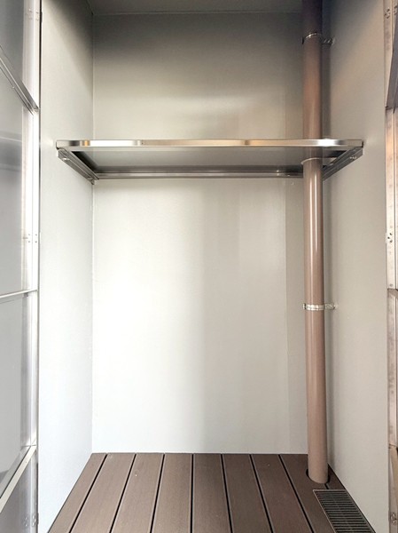 駐車場はシャッター付きの屋内タイプを採用。外部からの視線を遮ることができ、防犯面でも安心感があります。大切な愛車を雨風から守りながら保管できるのも嬉しいポイント。