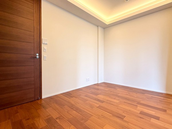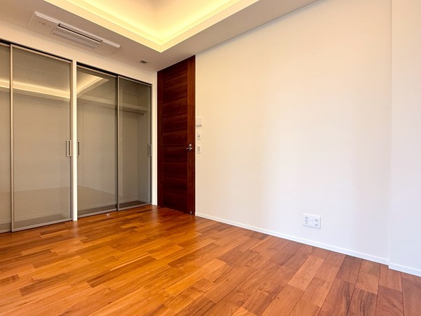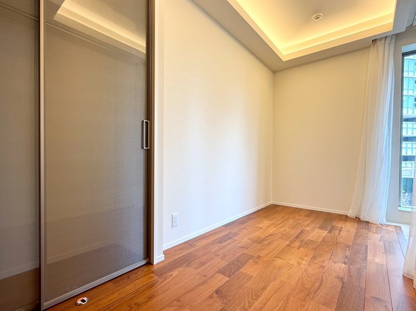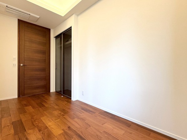 約7.0帖の洋室は主寝室におすすめの広さ。こちらのお部屋にも床暖房を備え、寒い季節でも心地よく過ごせます。整形のレイアウトでベッドの配置がしやすく、大容量クローゼットも設置されているため収納面も安心。