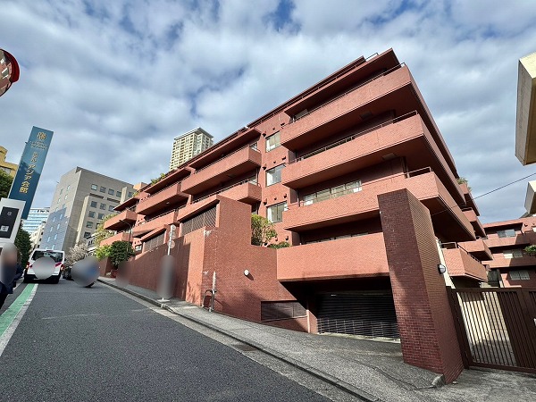 外観は重厚感のある赤レンガ造り。鹿島建設株式会社施工の『赤坂グランドハウス』は、1979年7月築、地上5階建て・総戸数48戸の低層レジデンスです。