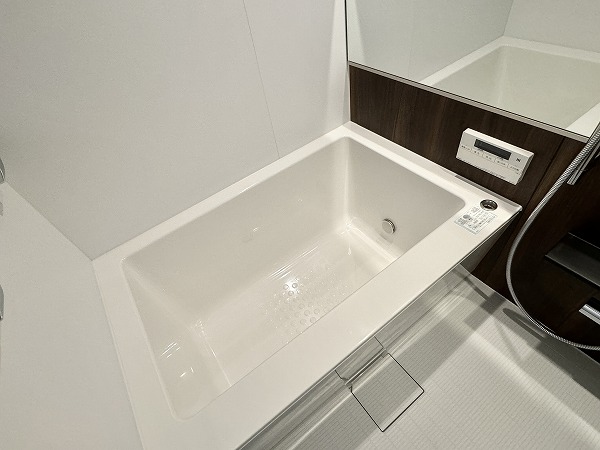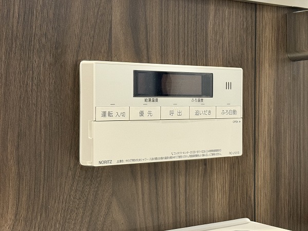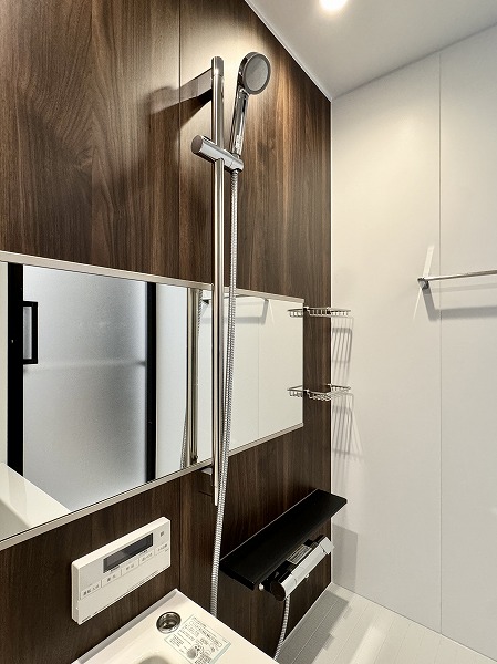 バスルームは、木目調デザインを取り入れた落ち着きのある空間。視覚的にも温もりを感じさせ、日々のバスタイムを穏やかなひと時へと導いてくれます。追い焚き機能と浴室乾燥機を備え、時間帯や天候を問わず快適にご使用いただけますよ◎
