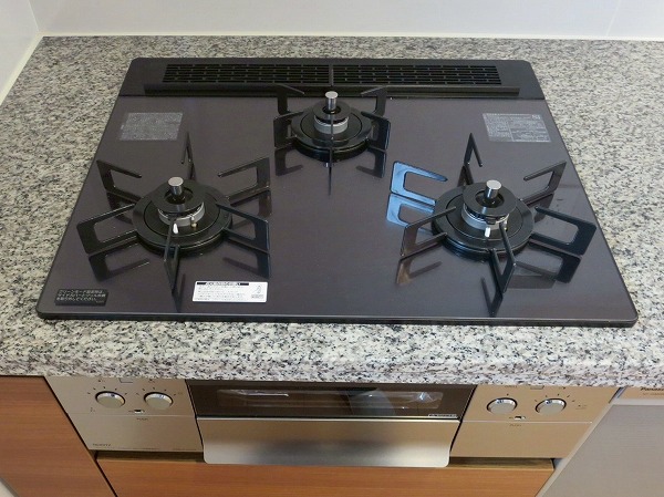 キッチンは独立型のリビング・ダイニングから離れた形となっていますよ。料理に集中しやすく、臭いや油煙、調理音を広げにくできます。食洗機やグリル付き3口コンロが完備され、調理スペースも広く、スムーズに料理を行えそうですね!