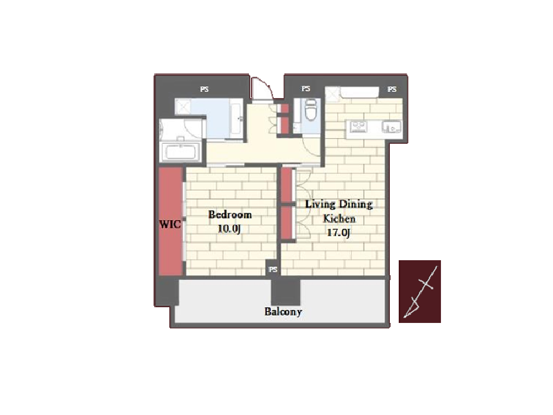 約8.5帖の洋室には大容量サイズのウォークインクローゼットを完備しています。天井カセットエアコン付きなのも嬉しいポイント。窓からは採光があり、1年を通して快適にお過ごしいただけます。