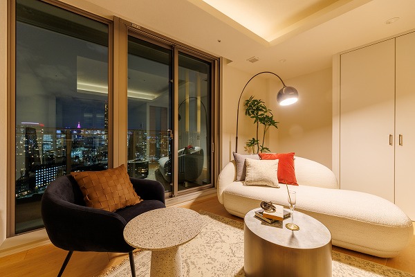 高層階に位置するため、窓の先には港区の街並みが一面に広がっていました。時間帯によって移り変わる景色を楽しめるのは嬉しいですね。昼間は空の青さが心にゆとりを、夜には街の灯りが宝石のように瞬きロマンティックな雰囲気に・・・♡