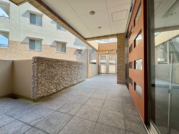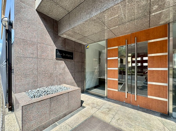 エントランスへ続くアプローチには、透明感のあるガラス扉が設けられ、訪れる人を穏やかに出迎えます。落ち着きの中に上質さが漂う佇まいが印象的です。