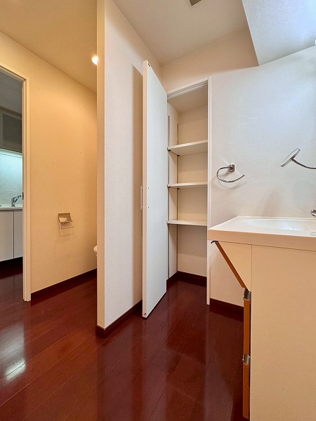 水回り機能がまとまったサニタリースペースは、快適さと美しさを両立。家事や支度がしやすく、効率よく動ける設計です。お気に入りの香りや小物を置けば、毎日の支度時間が少し楽しくなりそう♪