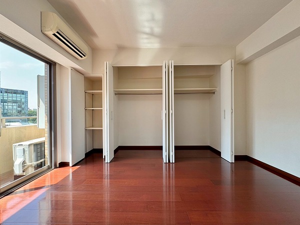 2つのクローゼットと可動式の収納棚を備えた洋室は、機能性と快適さを兼ね備えた設計。整理整頓がしやすく、すっきりとした空間を保てます◎また、ペット飼育可能なのも魅力。穏やかな暮らしにぬくもりを添える空間です。