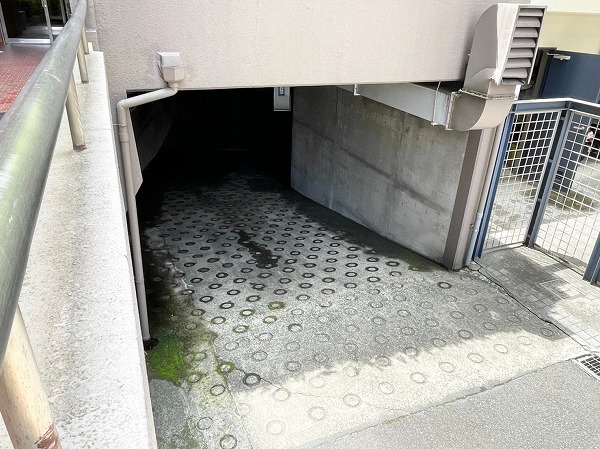 アプローチ部分は長く取られており、マンションと「赤坂通り」との距離が空いていました。車の走行音や、通行人の声を気にせずに暮らしが叶いますよ。
