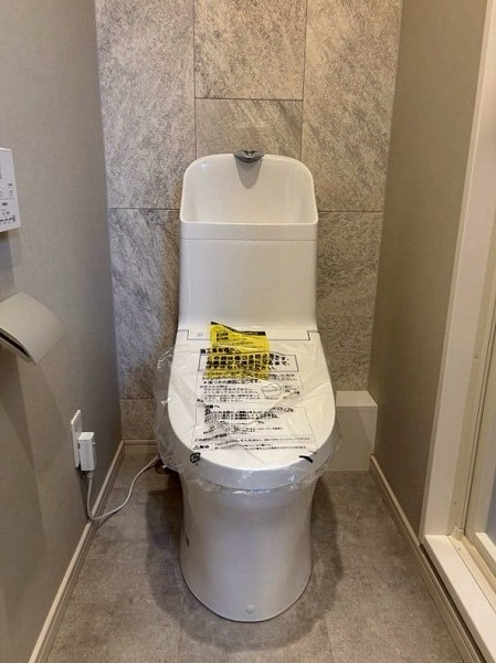 グレートーンでまとめたトイレ空間は、無駄のないスマートなデザイン。バスルームと繋がるシームレスな設計が、空間全体をモダンに見せます。小さな空間にもデザインのこだわりを♡