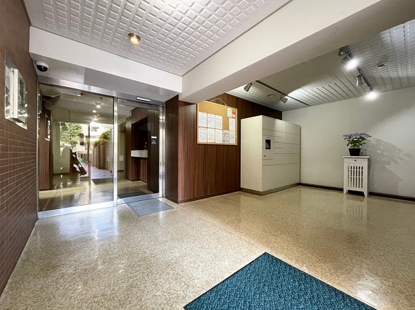 清潔感のある広々としたエントランス。オートロックを完備している上に、親切な管理人さんがいらっしゃるので防犯面もバッチリです。