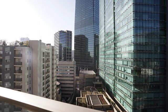 北西向きの開口部からは、高層ビルが整然と並ぶダイナミックな眺め。その向こうに青空を望めるため、都心にいながらも空の広がりを感じられます。直射日光が強すぎないため、穏やかな明るさを保てるのもポイント。