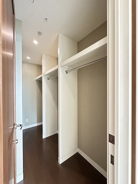 広さ約14.1帖の洋室には、2つのウォークインクローゼットが備えられています。ハンガーパイプ付きで衣類をしわなく保管可能。収納スペースを分けて使えるため、荷物の多い方にも嬉しい仕様です。ゆとりあるプライベート空間となっています。