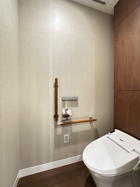 トイレスペースはシンプルで清潔感のあるデザイン。玄関付近と廊下側の2カ所に設置されており、ご家族での生活にも便利な配置です。来客時と日常用で使い分けることもでき、快適に利用できそうですね。