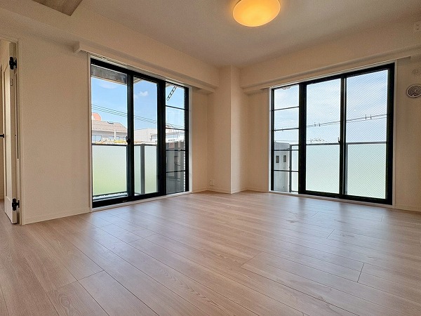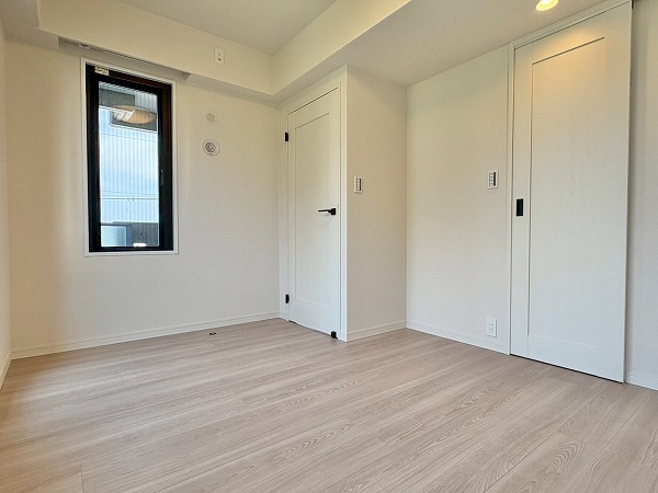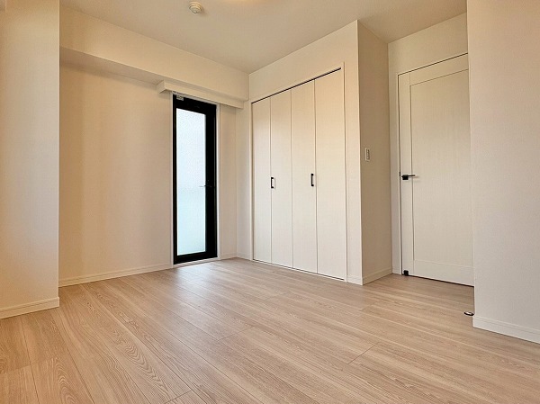 約6.5帖の洋室には、大容量のクローゼットを設け収納面も充実。北と東の2面にバルコニーが広がり、朝日を浴びながら爽やかに目覚められます。心地よい風が通り抜ける、リラックスできるお部屋ですよ☀