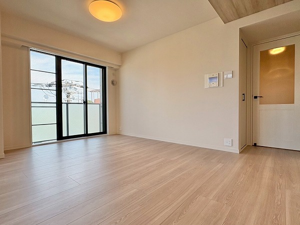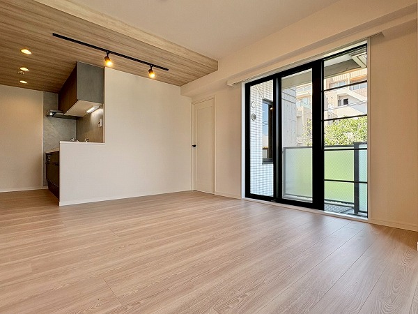 リノベーションにより生まれ変わった約12.5帖のリビングダイニングキッチン。ナチュラルウッドが印象的な内装は、爽やかさと上品さを兼ね備えています。2方向に広がるバルコニーが光を招き、開放感あふれる居心地の良い空間です♪