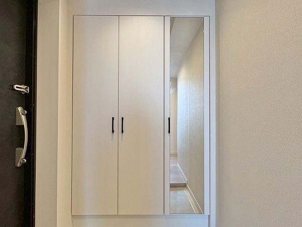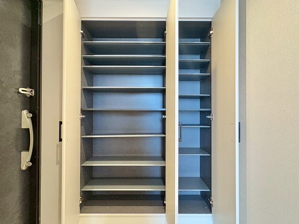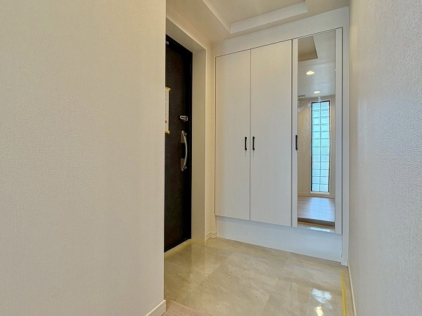 石材を基調としたエントランスはシックで上品。オートロックが備わり、防犯面も万全。外観から続く高級感ある佇まいが魅力です。