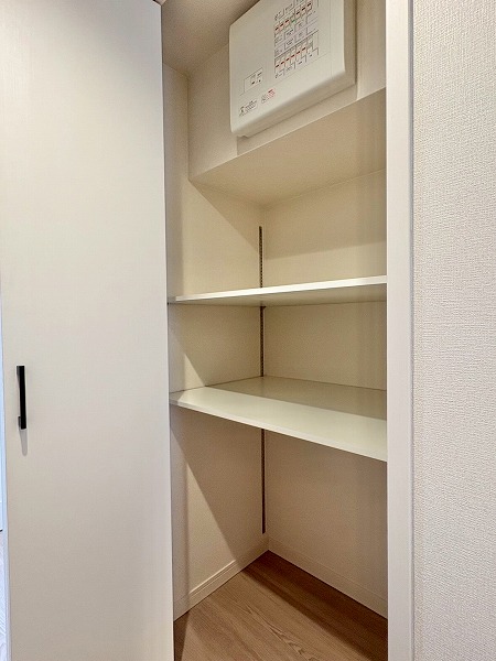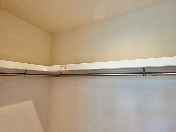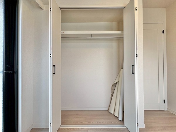 洋室にはゆったりとしたウォークインクローゼットを完備。丈の長い衣類もきれいに収納でき、衣替えもスムーズ。大きめの荷物も難なく収まるので、すっきりと片付いたお部屋を保てますよ✧