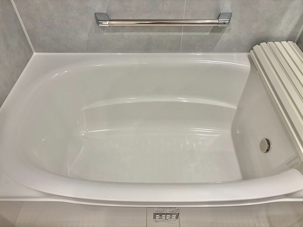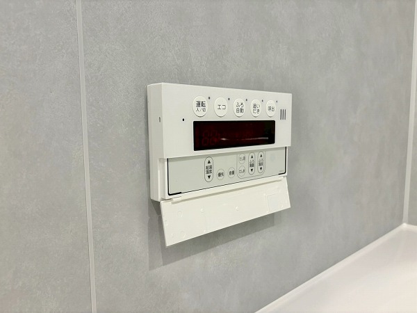 上品なトーンでまとめられた浴室は、グレーの壁面が穏やかな雰囲気を演出。広めの鏡が明るさを取り込み、清潔感を際立たせます。追焚機能付きで、忙しい日もリフレッシュできる心地よいひとときを✧