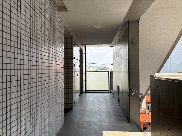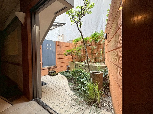 ロビーはモダンな石材デザインで整えられ、常に清潔感が保たれています。中庭の緑がアクセントとなり、ゆったりと落ち着ける共用スペースです✧