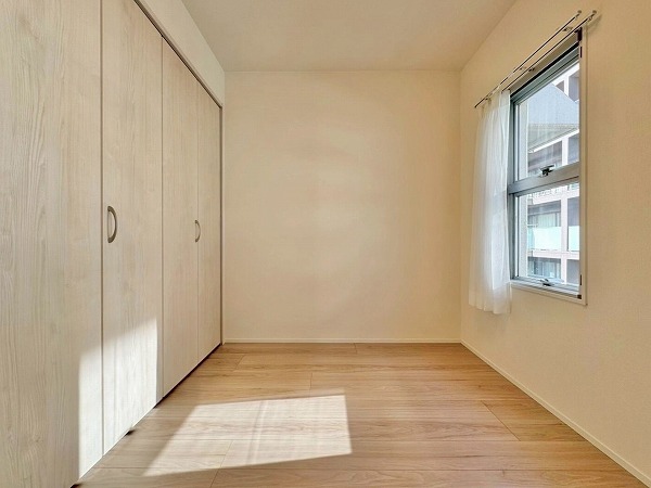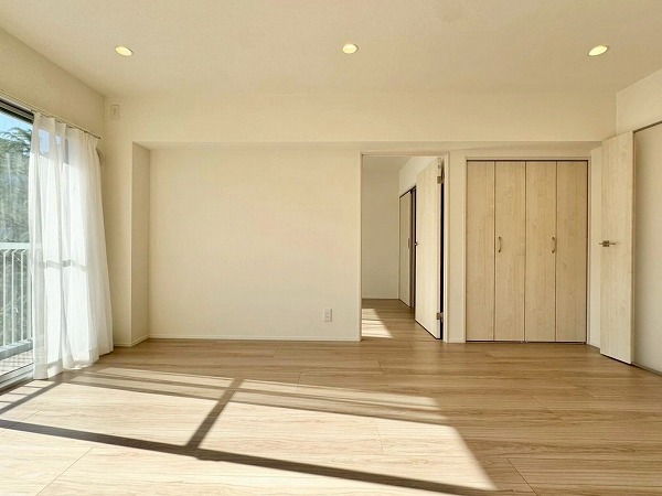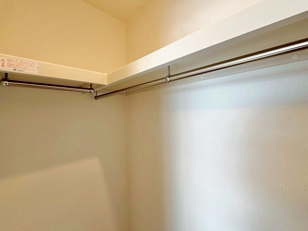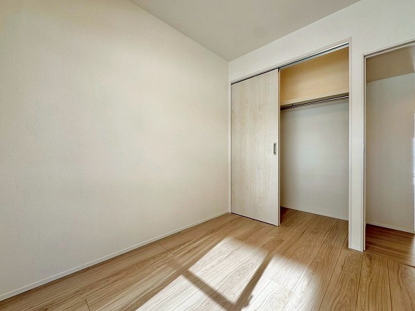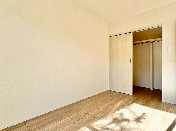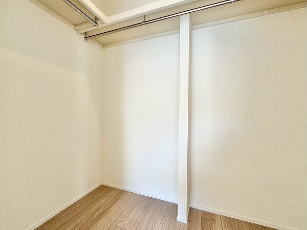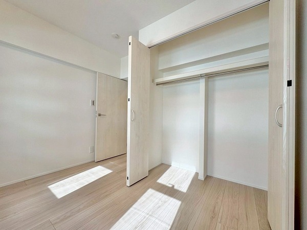 南向きの陽光がたっぷりと差し込む約5.8帖の洋室には、大容量のウォークインクローゼットを完備。衣類だけでなく季節物や大きな荷物もまとめて収納可能。室内をすっきり保て、広く使えるのは嬉しいポイント。