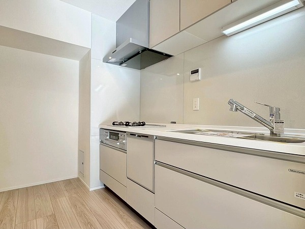 生活感が出やすいキッチンは、あえて独立した配置に。空間をすっきり保ちやすく来客時も安心。食洗機付きで後片付けもスムーズに進み、食後はゆったりと家族時間を過ごせますよ♡