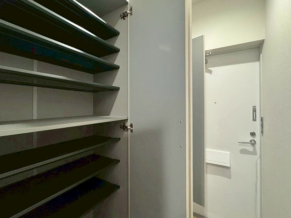 エントランスはコンパクトながらも無駄のない造り。メールボックスは動線上に配置されており、帰宅時にサッとと確認してから住戸へ向かえますよ◎