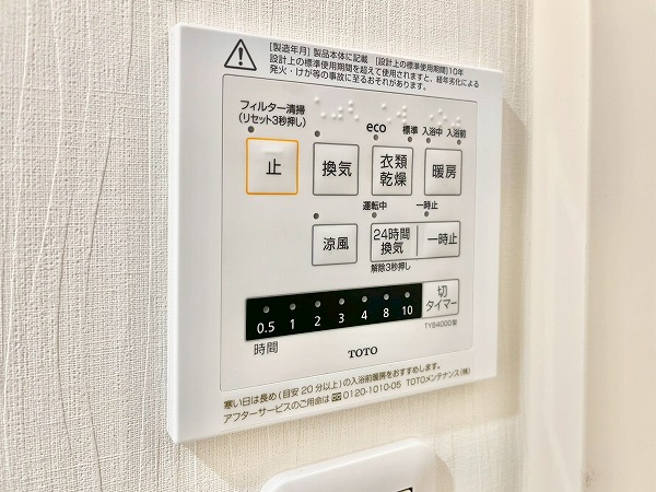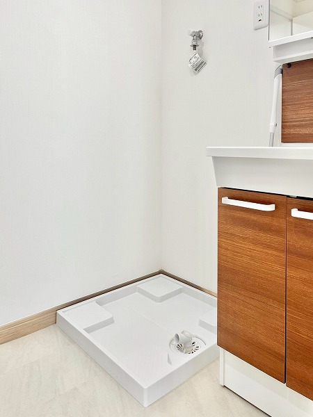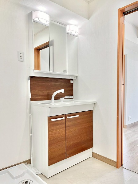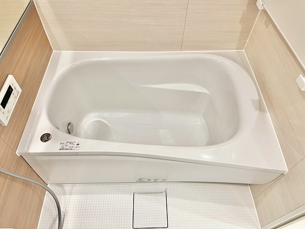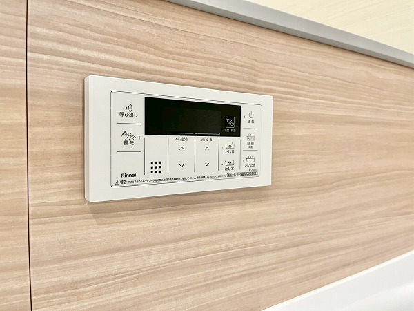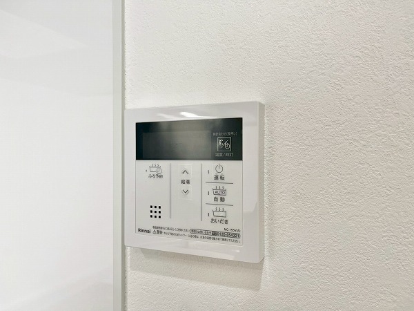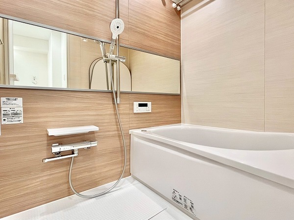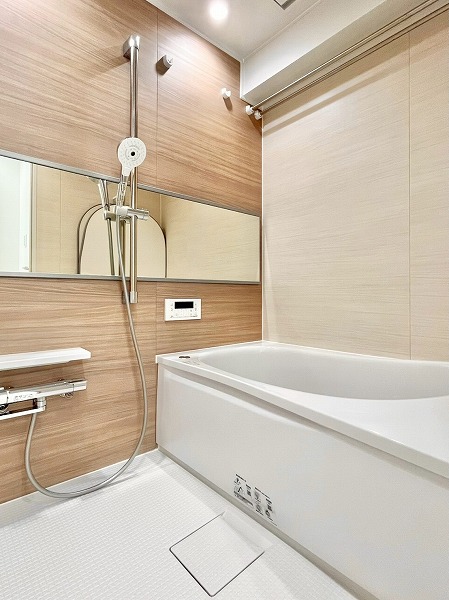追い焚き機能を備えたバスルームは、木目調のパネルを採用し、温かなリラックス空間を演出。ワイドな鏡は身だしなみを確認しやすく、空間を広く見せてくれます。浴室乾燥機能が付いているので、雨の日は洗濯物をすぐにこちらのバスルームで干すことも◎