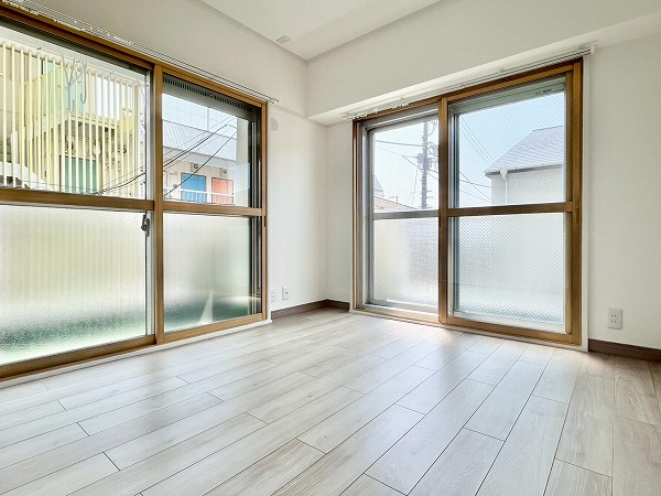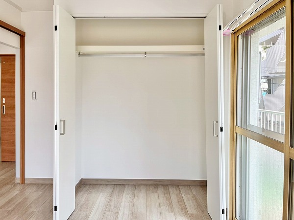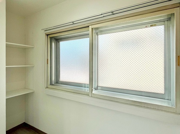 バルコニーは西・南の2箇所に設けられており、外に向かって広がりがあると、心にも余裕が生まれます。南側の方がゆとりがあり、陽当たりもよいので洗濯物を干すのにはぴったりですね。窓には二重サッシが設けられており、騒音・断熱効果にも配慮された造りがありがたいです。