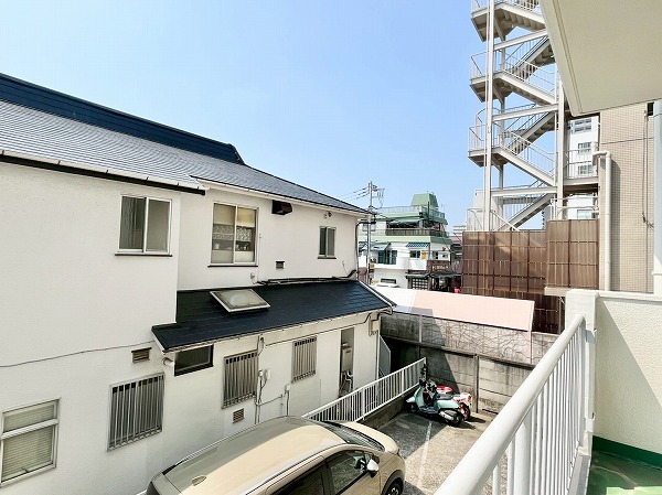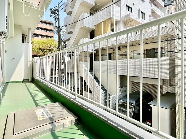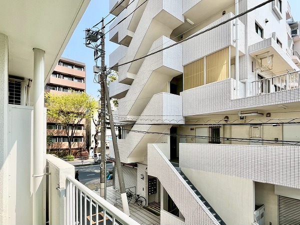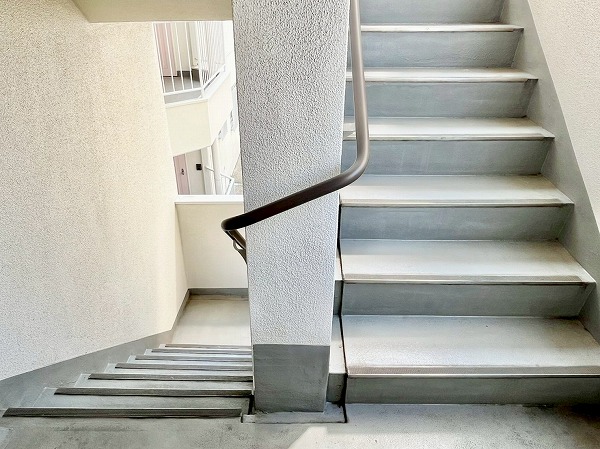 風が通り抜け、爽やかな雰囲気の外階段。扉と扉の間隔はゆったりしていて、朝の時間に鉢合わせることも最小限に。エレベーターと併せて外階段も設置されているので、低層階の方は日常的にもご利用いただけます◎