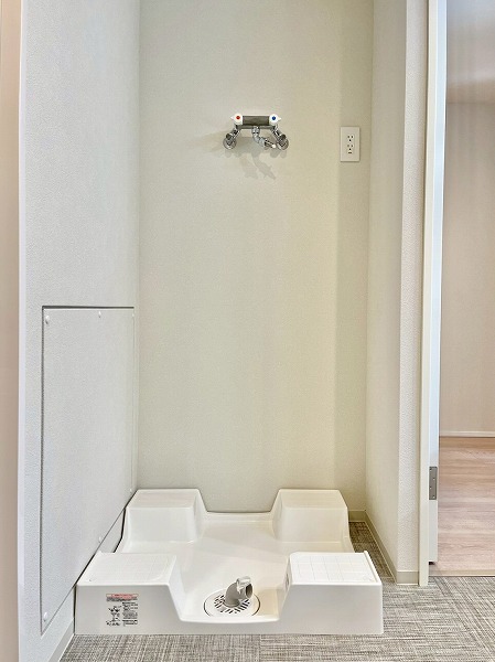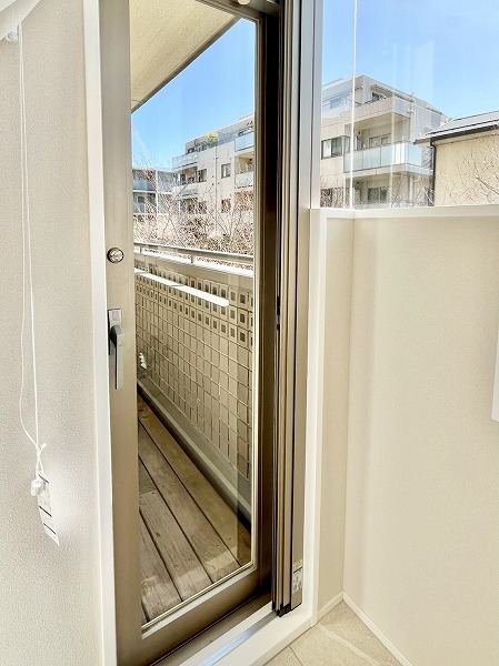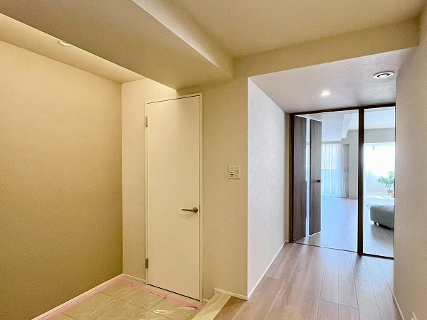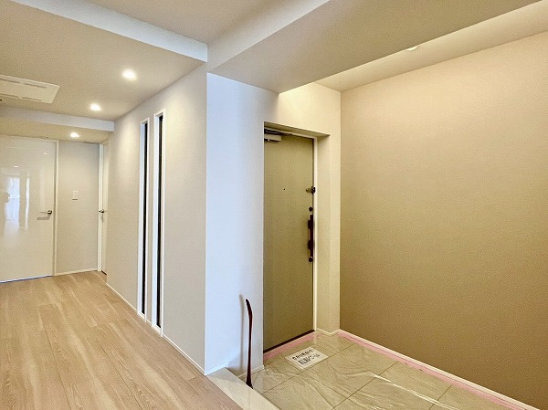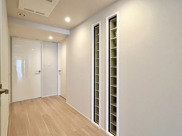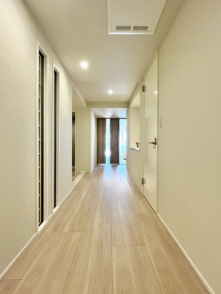 エレベーターを下りると、内廊下が続きます。廊下には1~2戸の住居が設けられ、すっきりとした造り。扉の前を住人が通ることはほとんどなく、騒音・プライバシーへの配慮がなされた造りがありがたいですね。