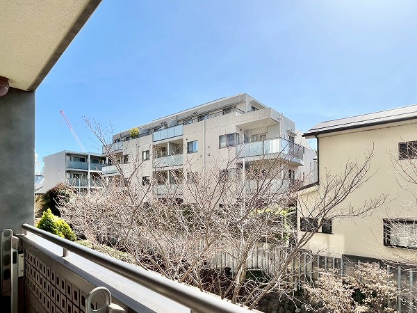 東急田園都市線桜新町駅から徒歩12分。『ライオンズマンション弦巻グランフォート』は街路樹や周囲の戸建ての庭が織りなす緑豊かなエリアに佇んでいます。