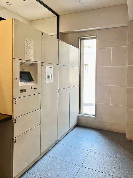 エントランスは光が入り、明るく開放的。オートロックを備えており、セキュリティ面の心配はありません。駐輪場へ入る際にもキーによる認証があり、安心ですね。エントランスには宅配ボックスも設置し、充実の設備が整っていました。
