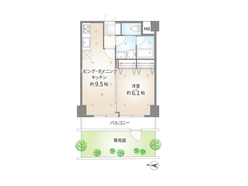バルコニーの先には専用庭が広がっています。広すぎず手入れもしやすいサイズ感が魅力的。ガーデニングを楽しんだり、朝のコーヒーを外で味わったりと、暮らしの幅が広がりそうですね✿