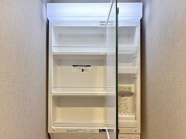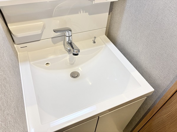 独立洗面化粧台は収納が充実している2面鏡タイプです。鏡裏は細かく仕切られているので、歯ブラシや石鹸などの小物類をすっきりとしまっておくことができますよ。鏡に付いている照明がお顔を明るく照らすため、お化粧や髭剃りの際に役立ちそう◎