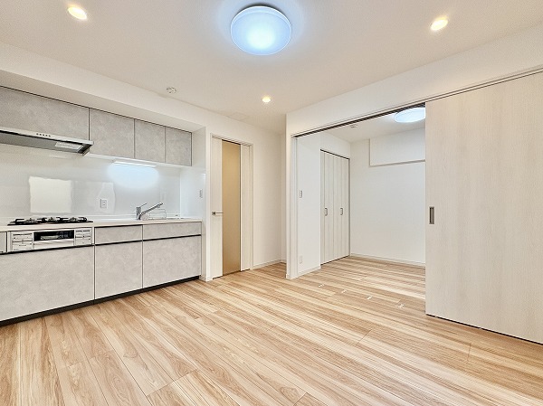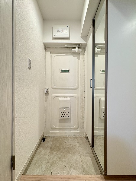 新規リノベーションが施された1階部分の1DK住戸。専有面積32.27㎡とシングルライフには程よい広さで、無理のないサイズ感が心地よく感じられます。コンパクトながら動線がシンプルなため、日々の家事や掃除もしやすく忙しい毎日を支えてくれそう。