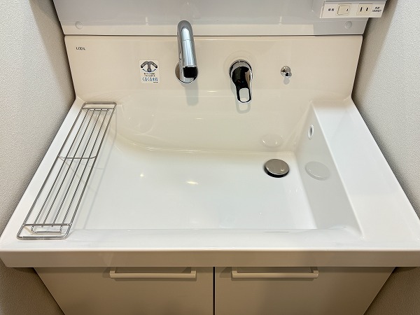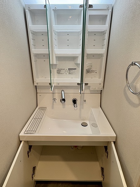 3面鏡仕様の洗面化粧台は、身支度がしやすく実用性の高い設備。収納力もあり、洗面周りが散らかりにくい設計です。清潔感を保ちやすいのは1人暮らしでも意外と重要なポイント◎