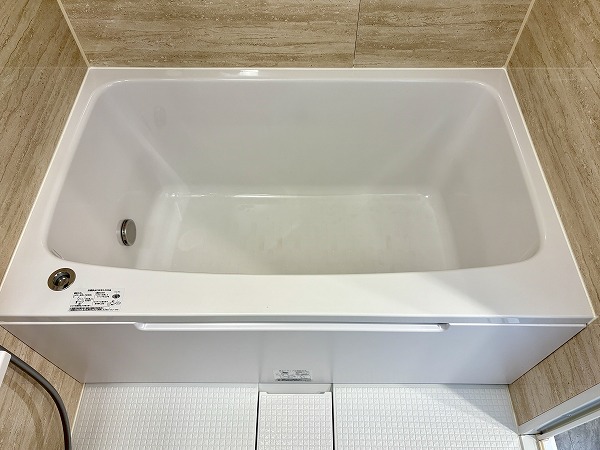 木目調パネルを採用したバスルームは、爽やかで落ち着いた雰囲気。1人での入浴には十分な広さがあり、スライドバー付きでバスチェアを使う方にも配慮されています。浴室乾燥機能付きで、天候や時間を気にせず洗濯ができるのも嬉しいですね。