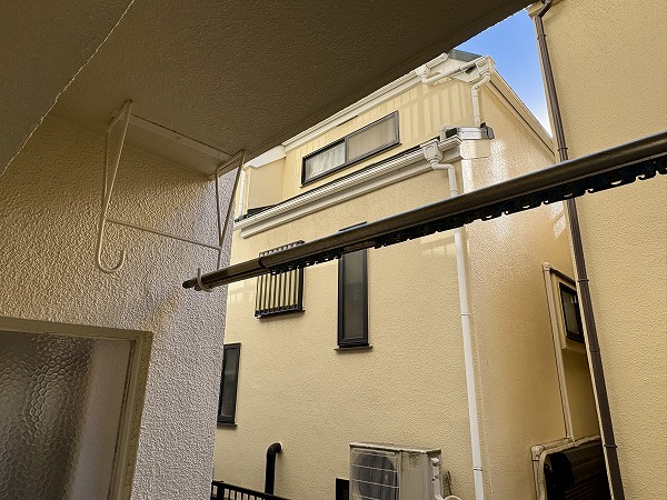 駐車場の脇には駐輪スペースを確保。屋根付きで、さらに隣接住戸の壁が風よけにもなっているため、雨が直接当たりにくい造りです。日常的に自転車を利用する方にとって、さりげなく嬉しいポイント◎