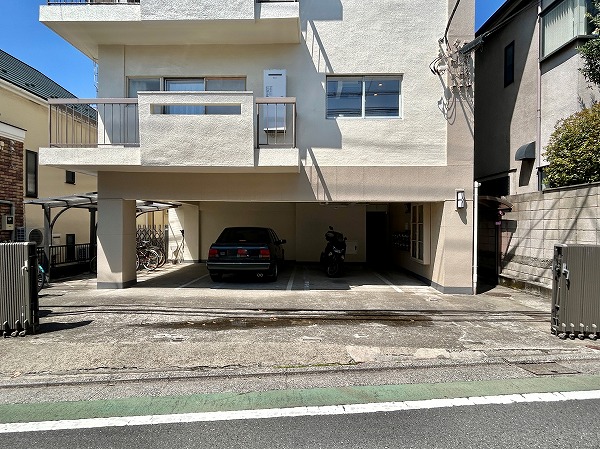 1階部分にはビルトインタイプの駐車場を完備。公道から少し奥まった位置に設けられているため、周囲の交通を気にせずゆっくりと駐車が可能。切り返しのスペースにも余裕があり、運転に自信がない方でも落ち着いて出し入れできそうな印象でした。