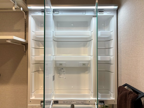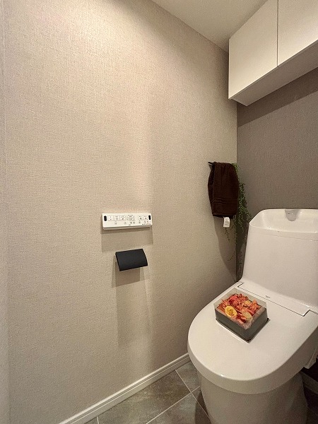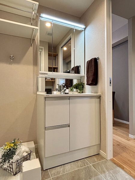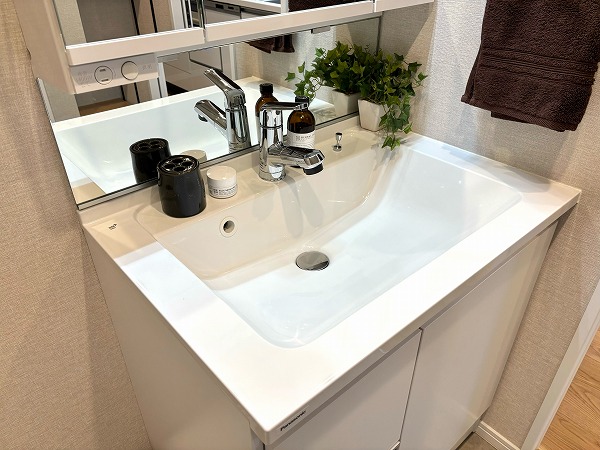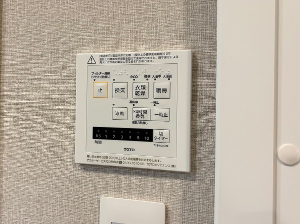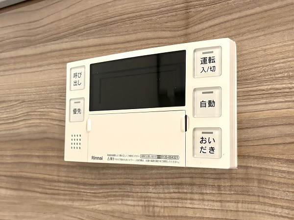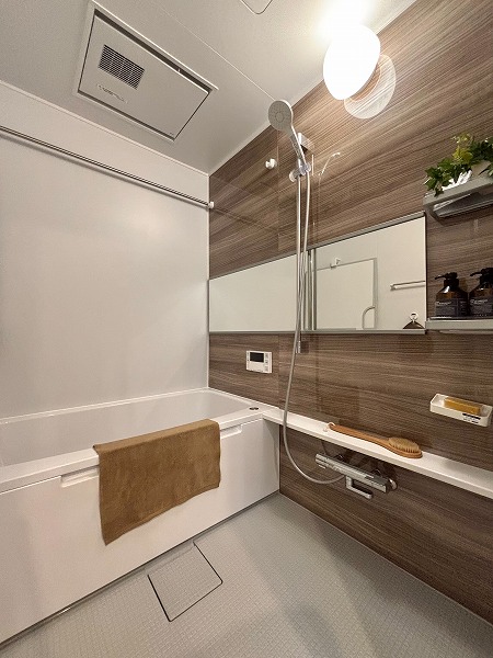 ブラウンのパネルで落ち着いた雰囲気に仕上げられた浴室には、追い焚き機能を完備。いつでも快適な入浴ができるのは嬉しいですね。さらに浴室乾燥機も搭載されており、活用すれば雨の日や湿気の多い日でも洗濯物を効率よく乾かせます。