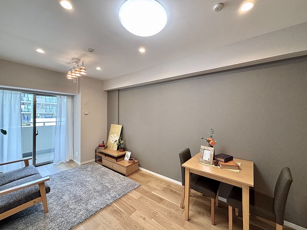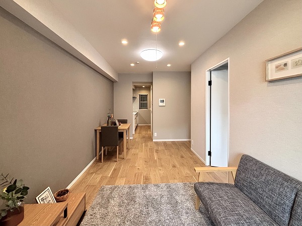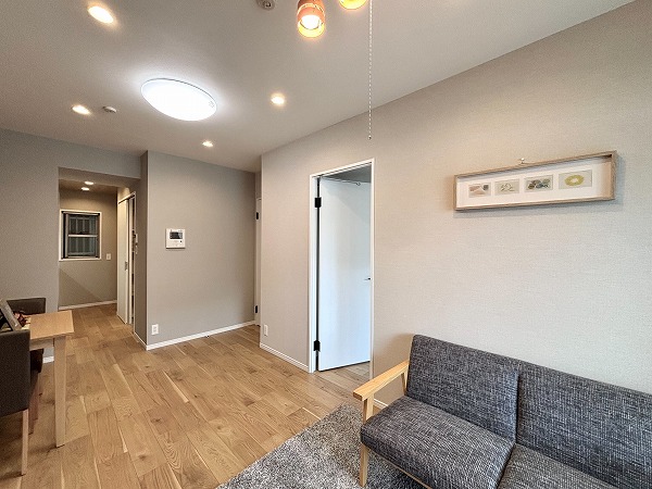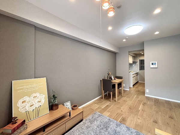 ペット好きには嬉しい、最大3匹まで飼える1LDKのお部屋です。室内は新しくフルリフォーム済みで、まるで新築のような清潔感が魅力。グレーのアクセントクロスが空間にほどよいアクセントを添え、スタイリッシュな雰囲気になっています✧
