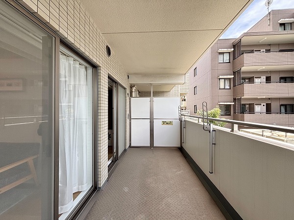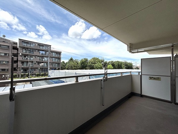 バルコニーは約9.8㎡のゆとりある広さが魅力。洗濯物を干すだけでなく、チェアを置いてリフレッシュしたり、ガーデニングを楽しんだりと多用途に活用可能。穏やかな時間を過ごせるアウトドア空間です☀