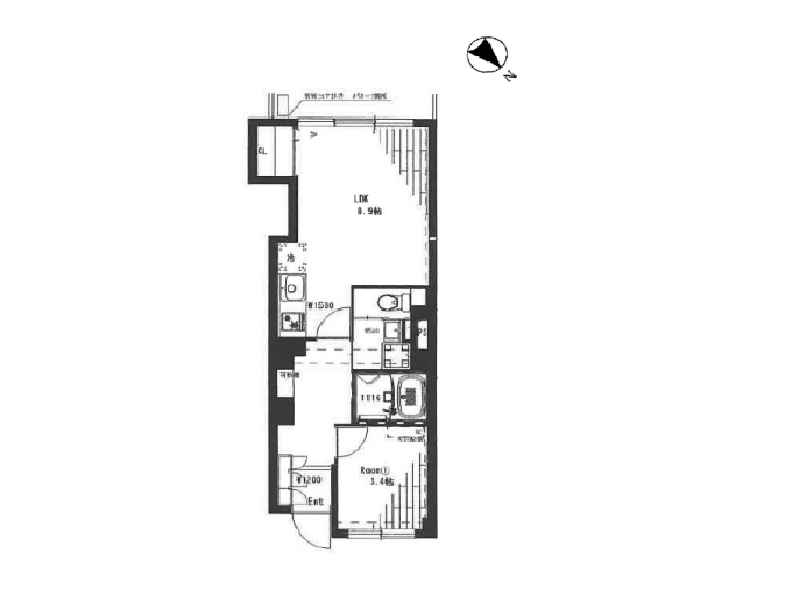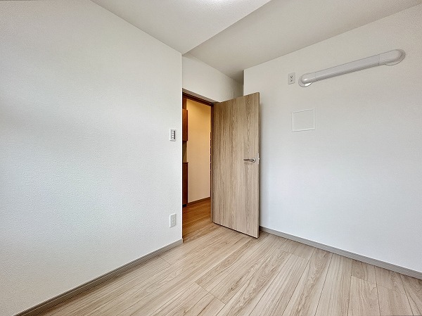洋室は約3.4帖と少々小さめの造り。大きな窓があるため、優しい光が入り閉鎖的な空間には感じません。メインルームと寝室を兼用すれば、収納や趣味のスペースとして活用できます。限られた面積でも工夫次第で快適な空間を作れそうですね。