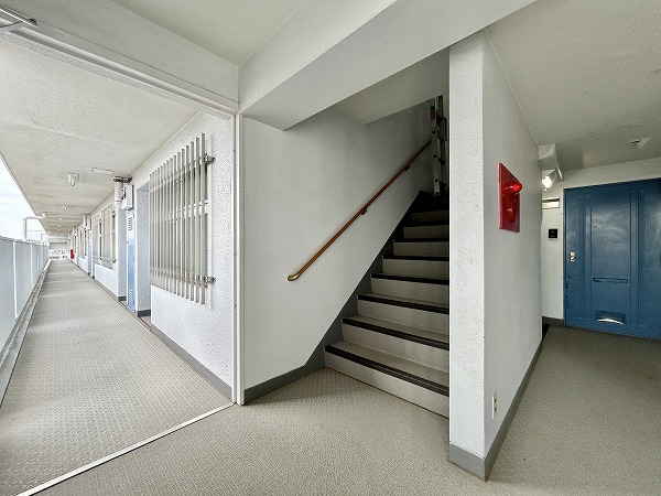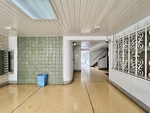 エントランスの奥には赤を基調としたエレベーターが1基設けられています。落ち着いた空間の中に鮮やかな差し色が映え、どこか遊び心を感じるデザイン♪朝の時間帯は多少混み合うこともありますが、気分転換や運動不足の解消を兼ねて階段を利用するのもおすすめ。