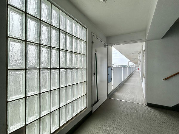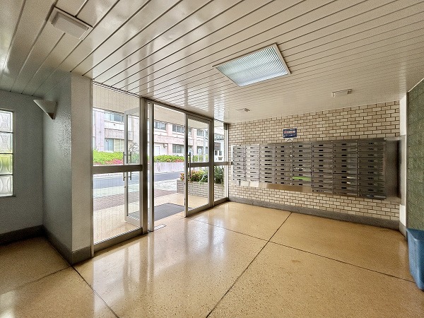 アプローチには手入れの行き届いた植栽が並び、マンション全体の印象を柔らかく演出。わずかな段差はありますが、緩やかな設計のためスムーズな動線を確保しています。
