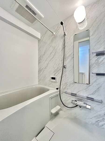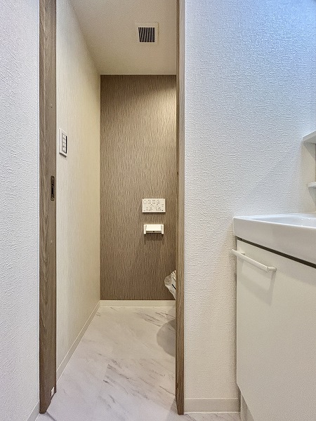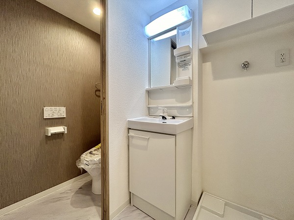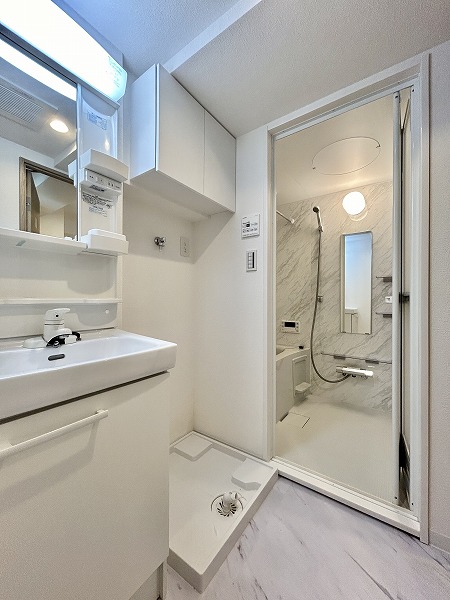 浴室・洗面台・トイレが集約したサニタリールーム。トイレはスライドドア付きで清潔をキープします◎追い焚き機能と浴室乾燥機を備えたバスルームで一年中快適な入浴が楽しめますよ。