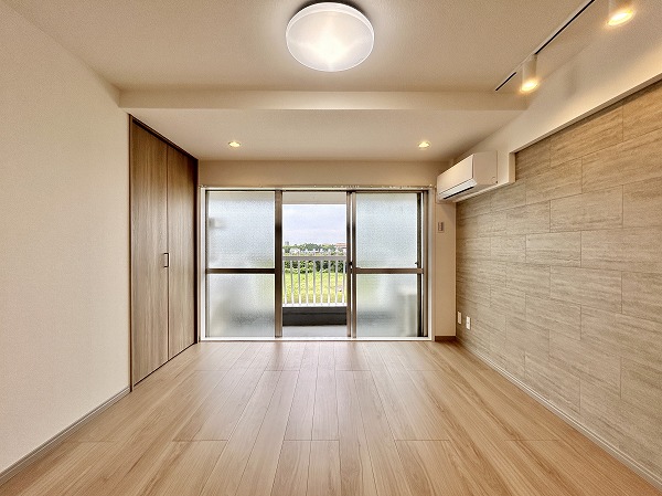 ご紹介するのは『田園フラワーホーム』の5階に位置する1LDKのお部屋です。南西向きの大きな窓からは、柔らかな陽光がたっぷりと差し込み、明るく心地よい空間が広がります。室内は新規フルリノベーションが施され、石タイル風のアクセントウォールが華やかさを添える上質なデザインにリニューアル✧また、デッドスペースが少ないレイアウトで家具の配置がしやすい点も魅力です◎洋室は約3.4帖とコンパクトなため、リビングを寝室と兼用することでワークスペースや趣味部屋など自由な使い方が楽しめそう!窓の外には多摩川緑地の美しい景色が広がり、開放感と緑の潤いを感じられる環境です。穏やかな日差しと風に包まれながら、ゆったりとした時間を過ごしてみてはいかがでしょうか。気になる方はぜひ、現地でその魅力をご体感ください✿ ライター:hana【25J22】