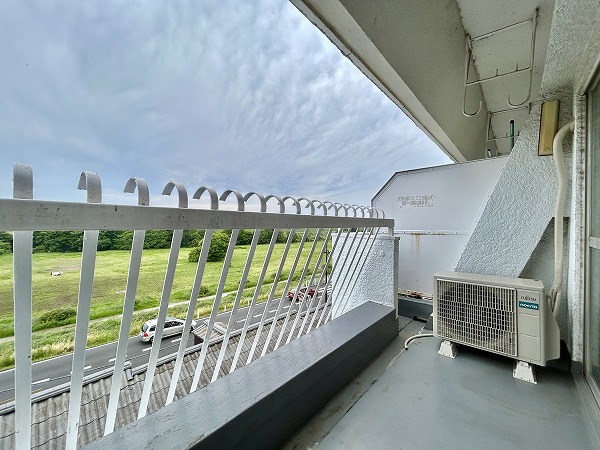 南西向きのバルコニーは視界が開け、プライバシーもしっかり確保。ヴィンテージ感のある白いカールフェンスが可愛らしいですね♡幅広で洗濯物を安心して干せるほか、チェアを置いて爽やかな外気浴も楽しめます。
