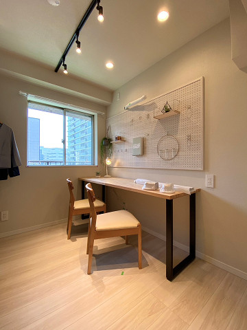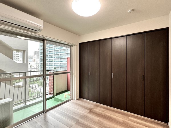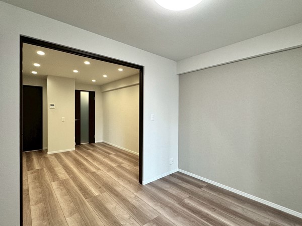 洋室はメインルームと隣接され、入口は大開口の引き戸となっています。メインルームには窓がありませんが、洋室の扉を開けておけばかなり開放的で伸び伸びとした空間に◎