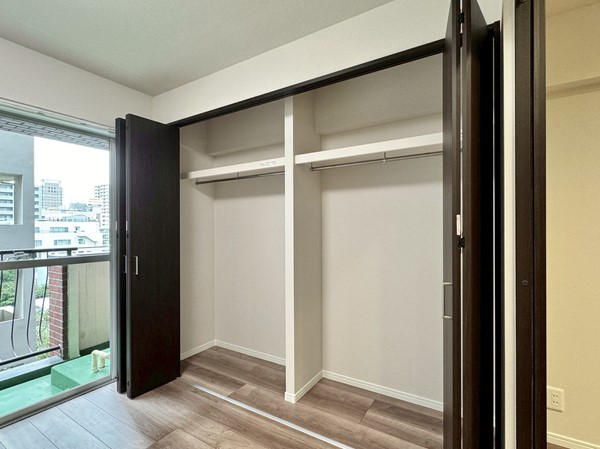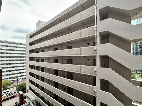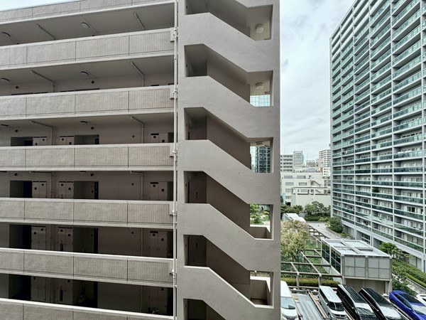ゆったりと横幅があるバルコニー。1~2人分の洗濯物であれば余裕をもって干すことが出来そうです。正面に建物はあるものの、密接していないため風通しが良く、空が開けた爽やかな空間でした。